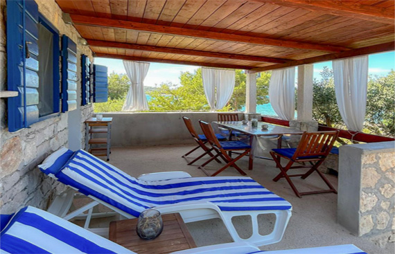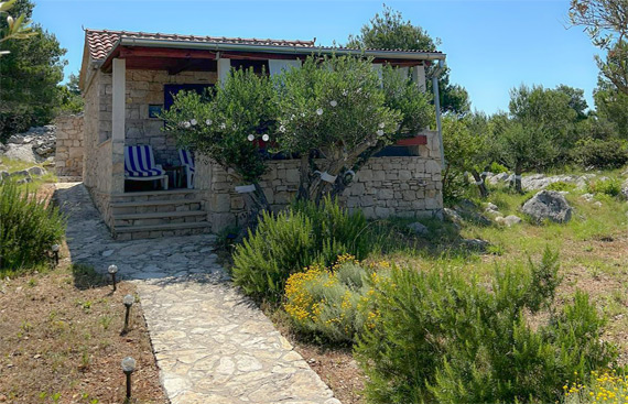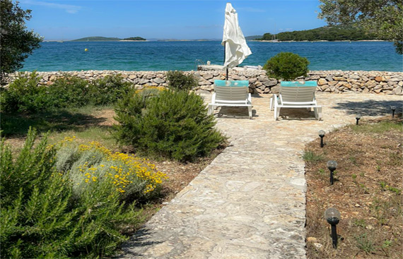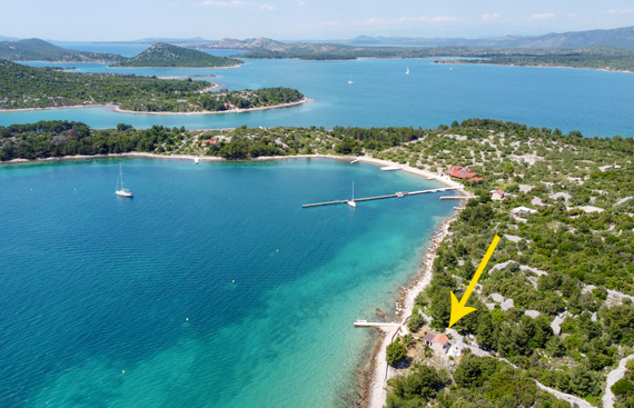 The Robinson house is located on the island of Zminjak, only 15 minutes away by boat from Murter and the town center. The house is secluded and has a dock and moorings for the boat up to 6m.