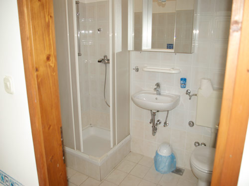 The apartment has a bathroom with a shower. There is a living room which can be used for sleeping.