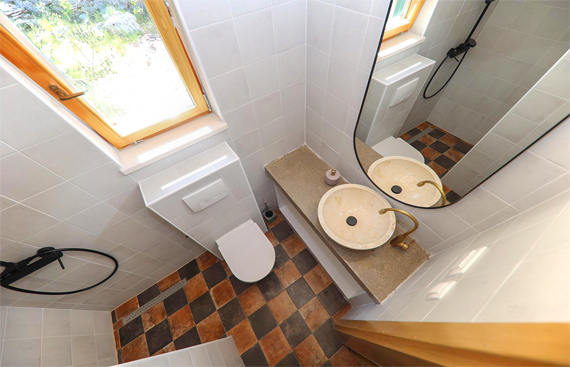 BATHROOM - showering from water tank heated by the sun. There is enough water in the water tank, but it should be used rationally.