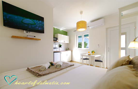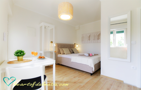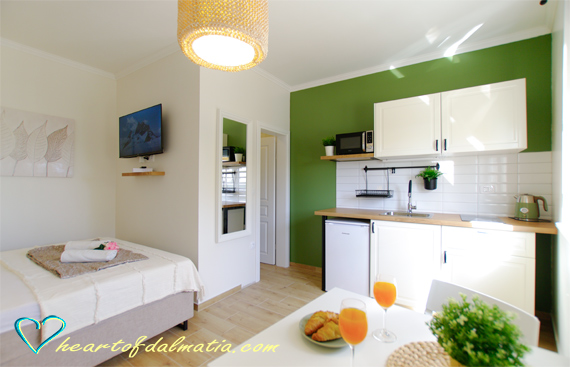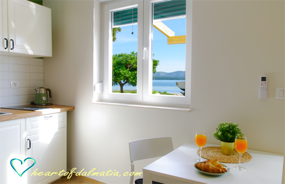 The newly renovated studio apartment for 2 persons is located in the center of Murter town, 100 m from the city beach "Luke" and 500 m. from the beach "Slanica". In front of the apartment is a dock with a place for a boat and a guest area directly by the sea in the shade of tamarisk tree. The apartment is ideal for those who want to be close to the center of town, near restaurants and markets, and for guests who come with a boat or who want to place the boat in a safe place in front of the apartment.