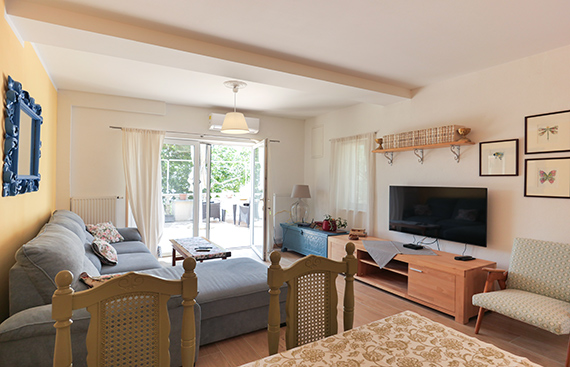 In the apartment can sleep 2 persons on the main beds and 2 persons on a sofa bed in the living room.