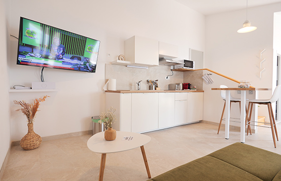 Apartment is equipped with tv, air condition, satellite receiver, oven, FREE Wi-Fi internet connection. The apartment has a bathroom with a shower.