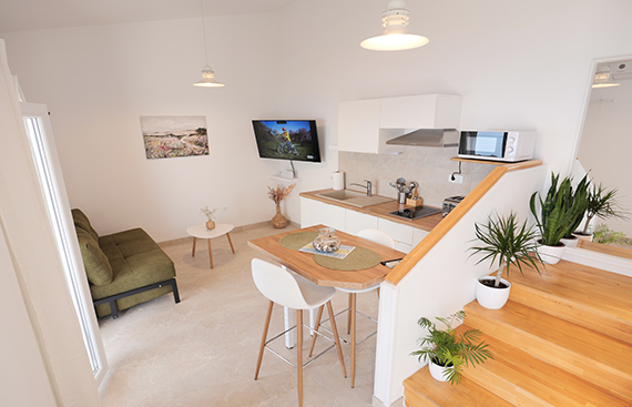 This newly renovated 2+1 person apartment is located in an excellent spot in the Podraduč zone on Murter, just 30 meters from the sea and a small beach. It is 200 meters from the popular Čigrađa beach, which has a fantastic restaurant and beach bar. The apartment’s terrace offers a stunning view of the Kornati Islands, and the sunsets are magical, creating a romantic atmosphere.