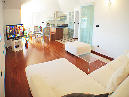 van felszerelve tv, légkondicionáló, műholdvevő, sütő, mosogatógép, INGYENES Wi-Fi internet kapcsolat. Az Apartman zuhanyzós fürdőszobával rendelkezik. Van egy nappali, amely alváshoz használható. A nappali területe 110 m2. aés az erkély / terasz 20 m2 nagy.