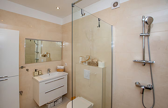 . Apartament posiada łazienkę z prysznicem. Ma 1 toaletę - WC.
