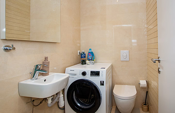 Apartament wyposażony jest w tv, bezpłatny klimatyzacja, odbiornik satelitarny, piekarnik, zmywarka, BEZPŁATNE połączenie internetowe Wi-Fi, pralka
